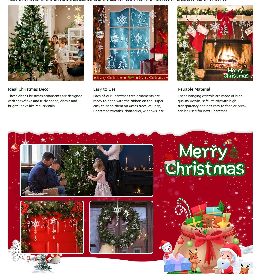 18/36Acrylic Hanging Christmas Tree Ornaments Hanging Acrylic Christmas Decorations Icicles Water Drop Pendants Hanging Decorati